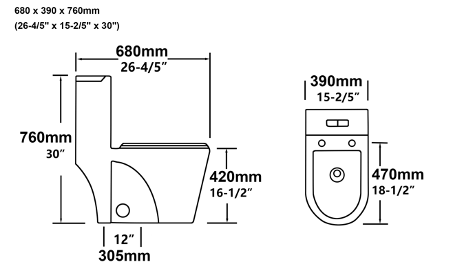 Overall: 680 × 390 × 760 mm (26-4/5″ × 15-2/5″ × 30″)