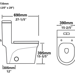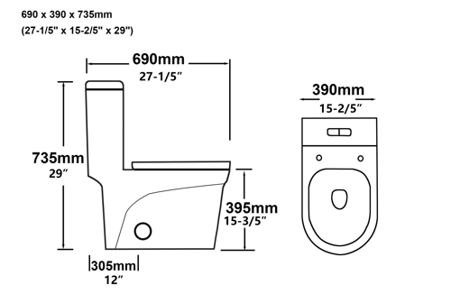 Overall: 690 × 390 × 735 mm (27-1/5″ × 15-2/5″ × 29″)