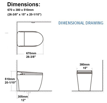 Overall: 670 × 380 × 510 mm (26-3/8″ × 15″ × 20-1/10″)